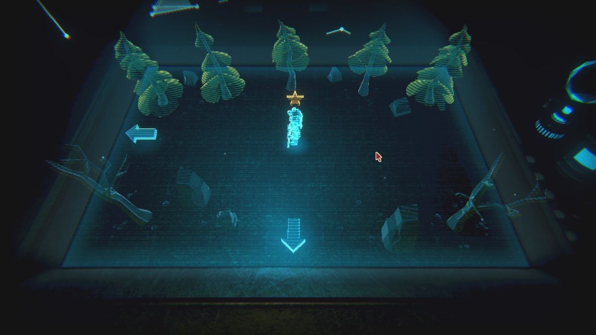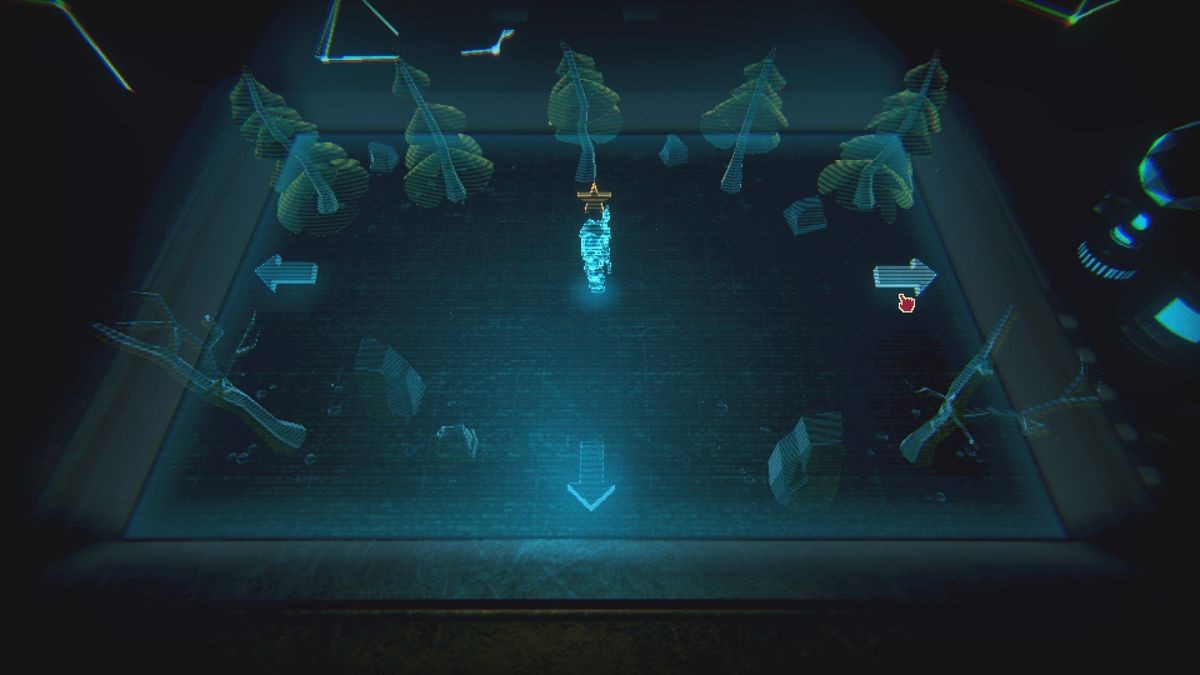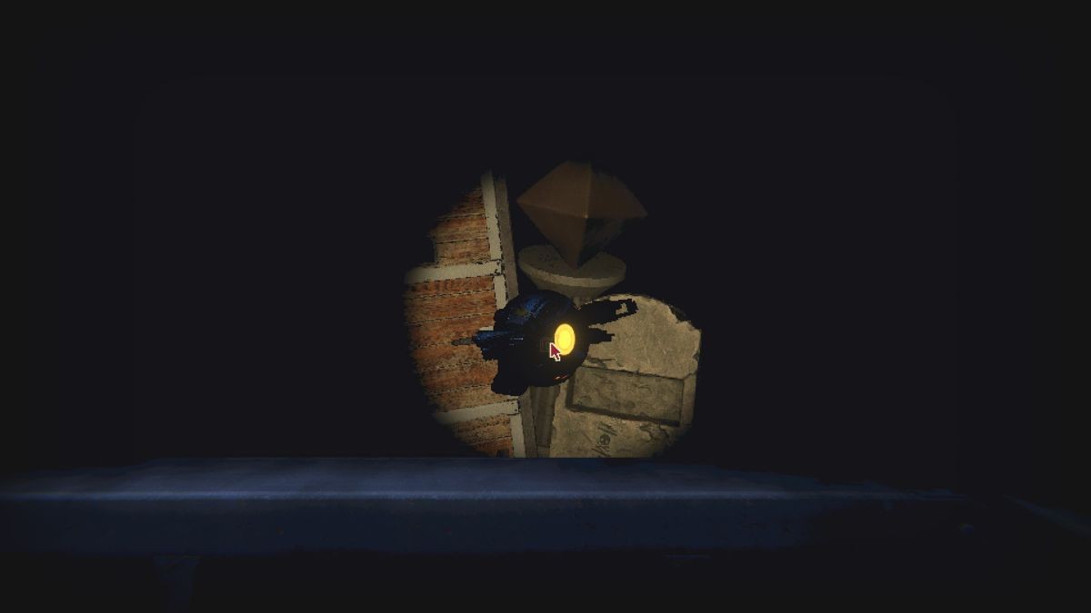 中部:在右侧房间中可以看到一个飞在空中的小机器人,点一下让他在空中转圈,再点一下会让它打开闪光灯。在时机合适时,能看到隐藏在黑暗中的提示。