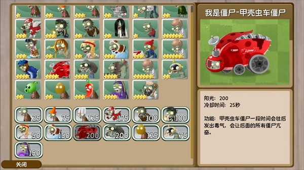 功能:甲壳虫僵尸一段时间会往后发出毒气,会让后面的所有僵尸亢奋。