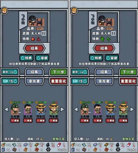 一般来说,高级幸存者都得刷出比较好的特性,至少不是废物属性,比如半感染者士兵/非半感染者特警就是比较能用的特性;高级幸存者相对难出,而刚好又随机到不好的属性那就废了,就像不是半感染者的士兵战斗力直接大打折扣,半感染者特警则是直接变路边。