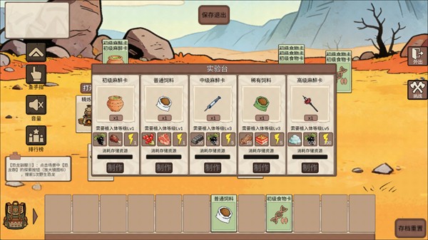 1、食物卡的主要产出方式是空投防守玩法,前期初级麻醉卡和饲料卡的制作难度低,通过驯服新的恐龙获得饱食度满的恐龙更效率,然后也可以利用已经消耗完饱食度的恐龙凑齐8张队伍后尝试只防守前面几波结算奖励物资箱。