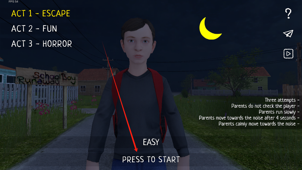 1、在本站下载安装好逃离家暴官方正版,运行游戏,进入游戏后你会发现是英文的,点击这个开始游戏;