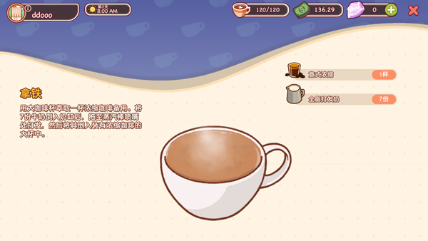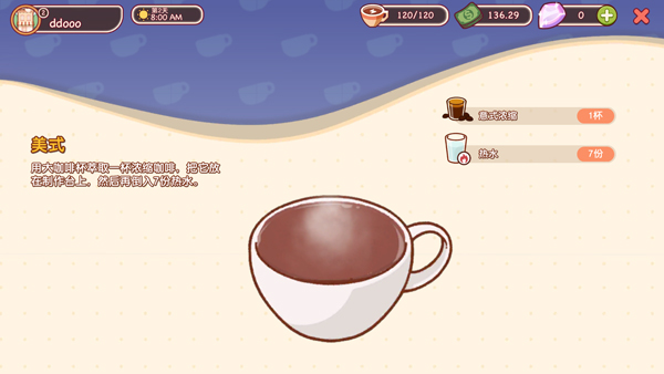 6、另外,玩家每次制作咖啡都会获得经验,累计一定后可升级,并解锁的新的咖啡配方。
