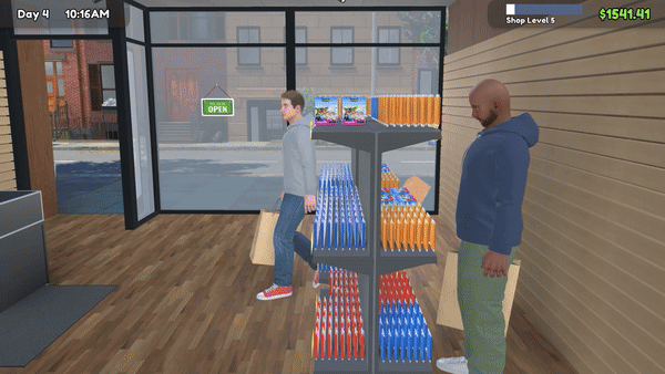 1、管理您的店铺:设计自己的TCG商店。整理货架和卡片包,使客户购物体验顺畅轻松。