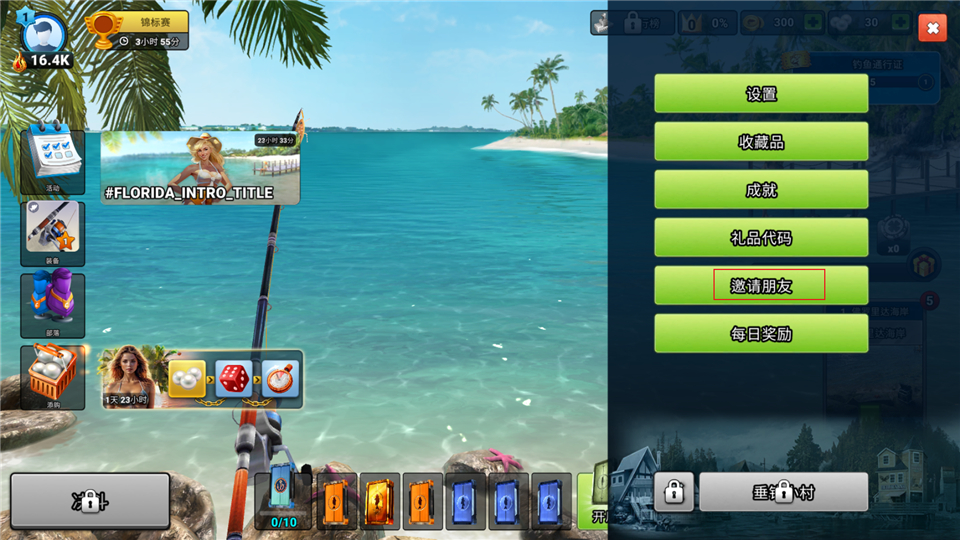 1、进入游戏界面,点击右上角的选项中的邀请好友;
