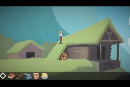 9、用石头在房顶修烟囱;去山顶拿回已经干了的木头