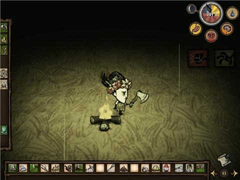 4、在游戏中除了各种意外随时都有可能会发生以外,右上角所显示的三个图示都是维持玩家生存下去的基本要素。分别为:胃图示的「饥饿值」;爱心符号的「血量」,大脑图示的「理智值」。这其中理智性的部分,会因为玩家的行动会造成影响,像是接近怪物或吃下非正常的食物或彻夜未眠等等,随着理性地降低除了玩家的视线会开始摇晃以及变化以外,还会出现「暗影生物」并且在理智低于15% 将会实体化并攻击玩家。