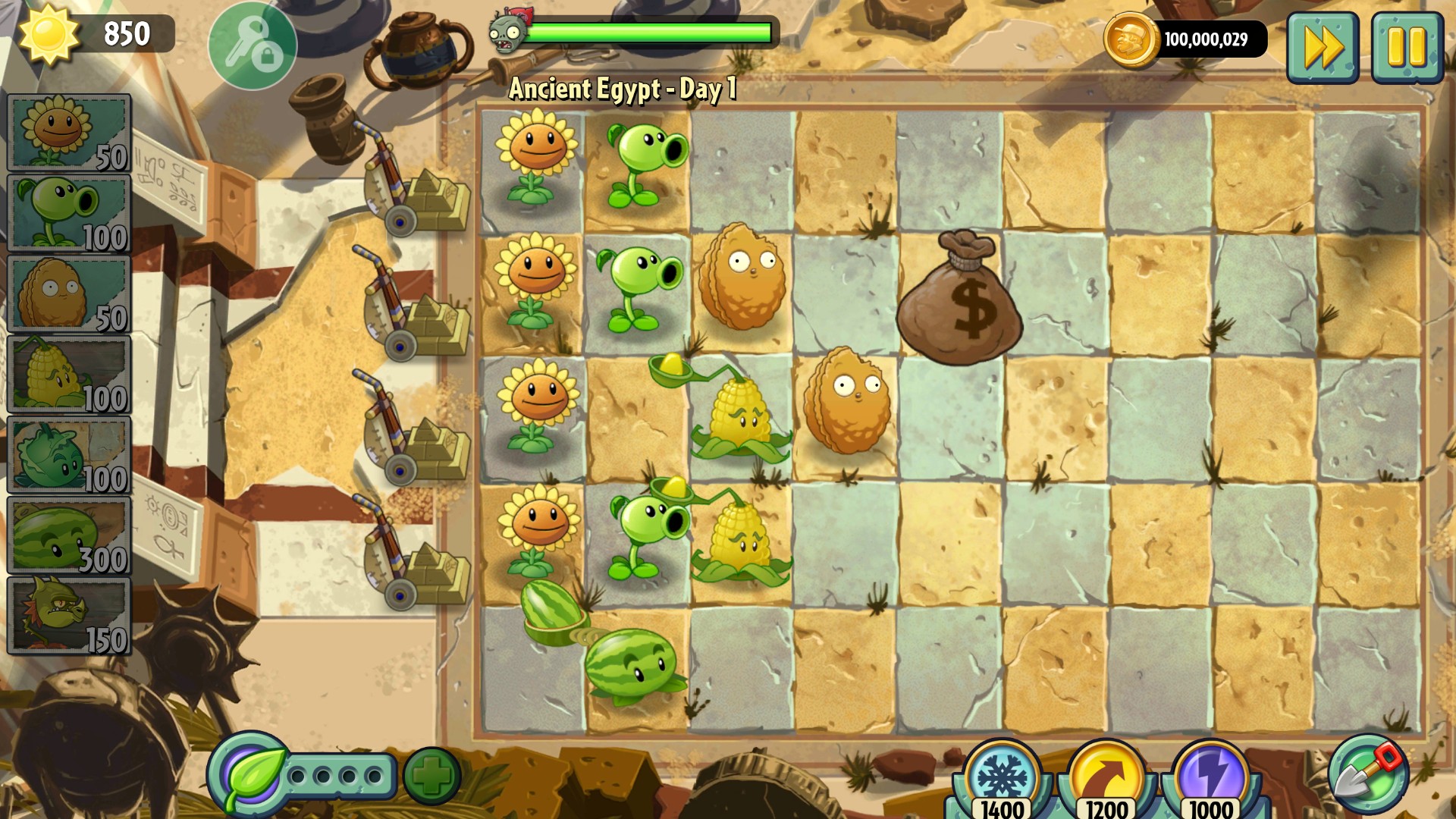 4、选择古代埃及世界第一关,然后开始选择我们的植物,选好以后就可以正式开始了