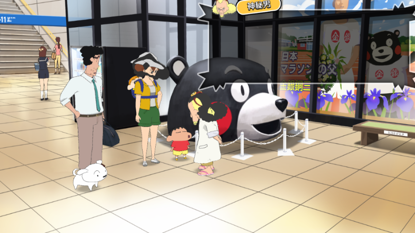 父亲广志、母亲美伢、主角小新、妹妹小葵、爱犬小白,在本作中需要前往熊本的阿素小镇拜访朋友代代子。