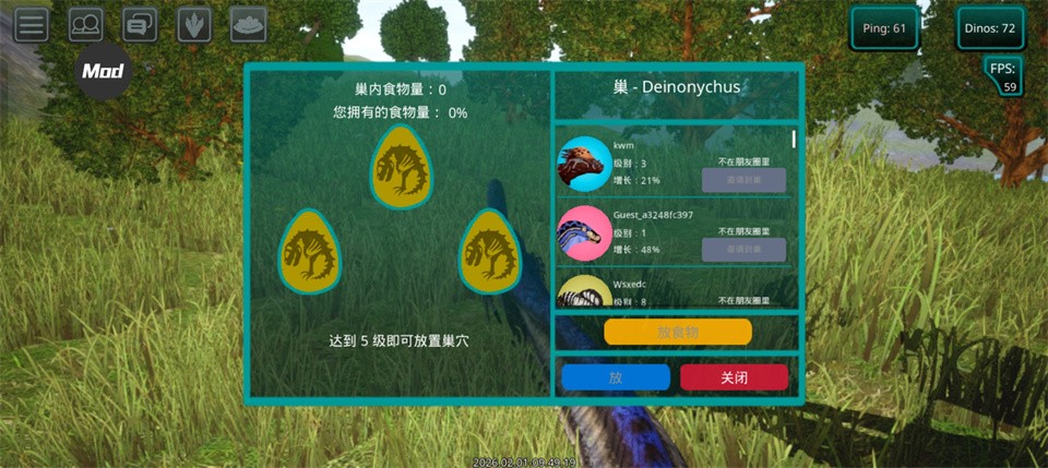 4、当蛋的进度条充满后即可邀请其他玩家协助孵化,最多可孵出三枚蛋(不同恐龙孵化时长略有差异,通常在9—10分钟左右)。