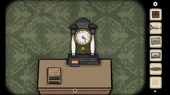 8、将时钟的时间拨到四点二十五,拿走暗格里面的「火柴」,来到镜子前,点击雪茄后用火柴点燃获得符号提示