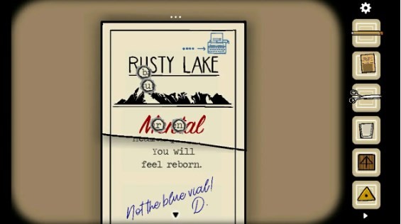 27、在打字机上输入burn后出现传单,用剪刀从中间剪开,再将两张纸重叠,根据纸上的提示「燃尽一切可燃之物」用雪茄将纸上可以被点燃的东西烧出洞,获得提示「life」
