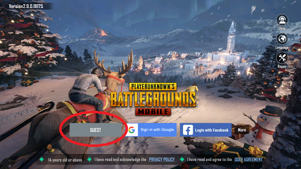 2、启动加速器之后,点击pubg进入游戏,在首页面勾选同意协议,使用账号登录(没有账号的玩家可以使用游客登录)。