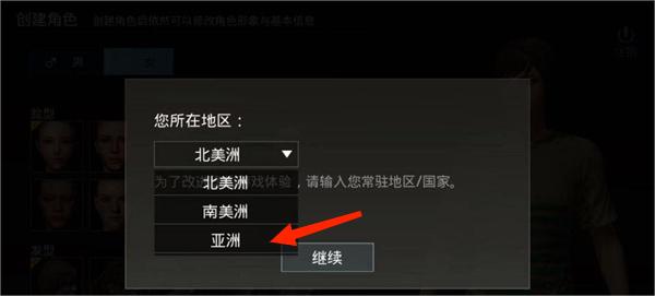 3、登录之后就会到来地区选择,这里我们选择亚洲,然后点击继续。