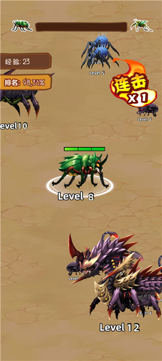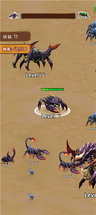 昆虫超进化最新版是一款休闲吞噬游戏。游戏以各种类型的昆虫为主题设计,玩家将能够在游戏中控制自己的昆虫不断行动,吞噬更小的生物来成长和进化,不断提升自己的实力来挑战更强大的敌人,享受成为昆虫霸主的乐趣。喜欢的玩家赶紧来下载吧。