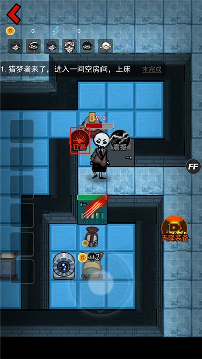 1、经典的塔防游戏玩法,你需要在房间里发育,提升自己的防御措施,不要被猛鬼突破。