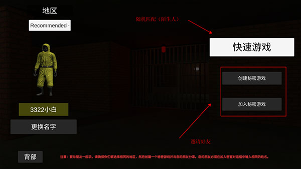 2、“快速游戏”是指和随机匹配,如果想要和朋友一起玩,选择“创建秘密游戏”可以创建房间 。