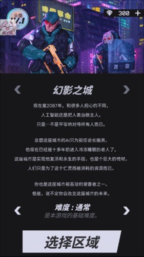 1、下载安装游戏,进入游戏后玩家只需要点击屏幕下方的按钮即可进入幻影之城游戏,进入游戏后玩家可以选择游戏的难度还有选择区域;