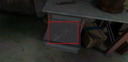 5、使用钥匙打开架子上的箱子,拿到钢锯,如图所示;