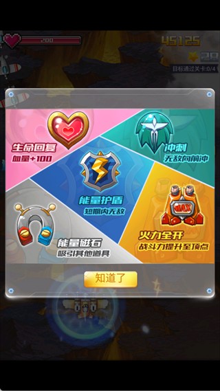 生命回复、能量护盾、冲刺、火力全开、能量磁石五种核心道具的效果与作用。