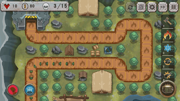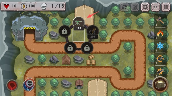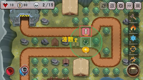 玩法类似于经典塔防游戏《保卫萝卜》,玩家需要在关键位置建造并布局炮台,阻止敌军的进攻。