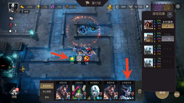 3、在酒馆中购买场上已有的相同英雄可以选择升星,升星后可以提高各项属性。