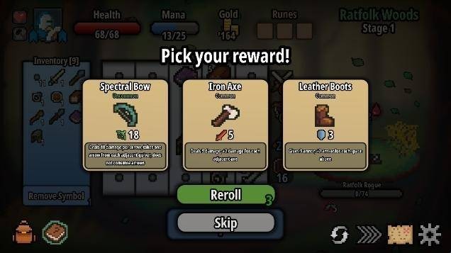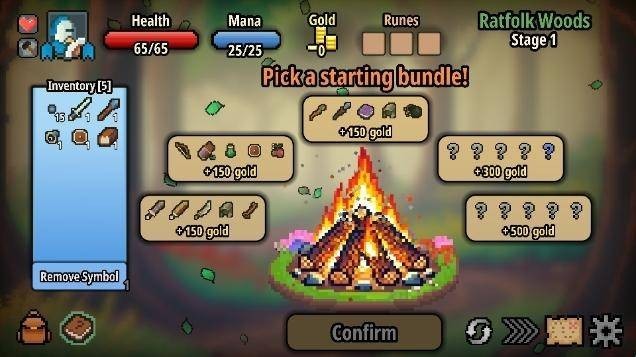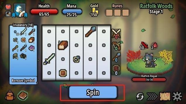 游戏的核心玩法围绕着一个创新的转轮机制展开,在每次战斗前,玩家需要转动转轮来获取图标,这些图标代表了不同的武器、防具或法术。通过这种方式,玩家可以构建出独一无二的卡组,并根据敌人的类型和战场情况灵活调整策略1。