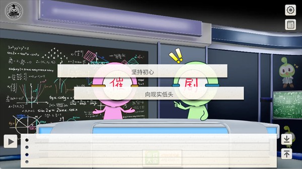 游戏过程中会遇到创作理念上的重要抉择:“坚持初心”与“向现实低头”。