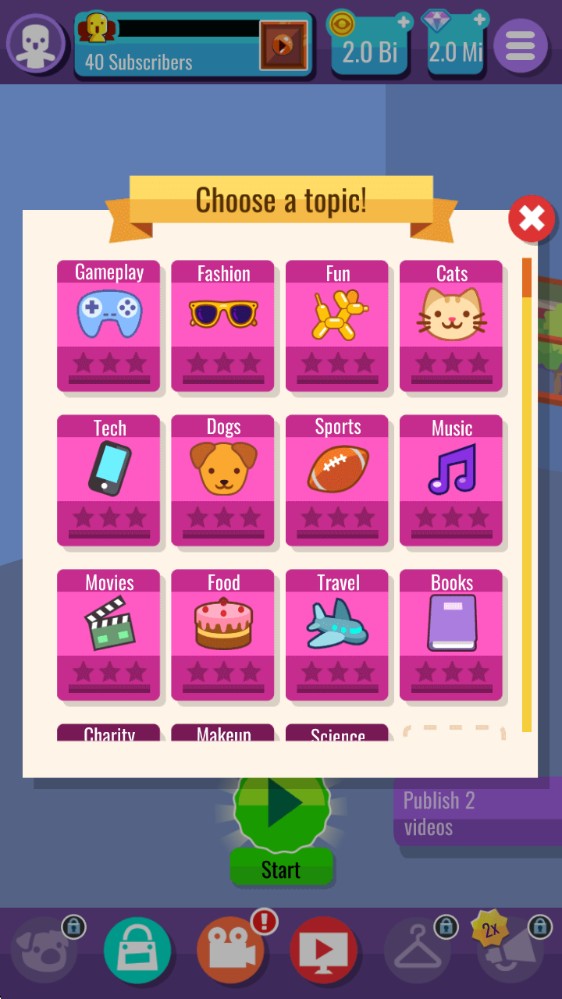 网红之路是一款带给玩家休闲益智的养成游戏,这款游戏采用了简约可爱的卡通游戏画风,带给玩家轻松的视觉效果感受,这款游戏中玩家将扮演一名网红,带给玩家全新的游戏体验,获得新奇有趣的游戏体验,玩家需要不断的提升你的人气,享受轻松欢乐的游戏时光,对此感兴趣的玩家一定不要错过,快来下载游玩吧。