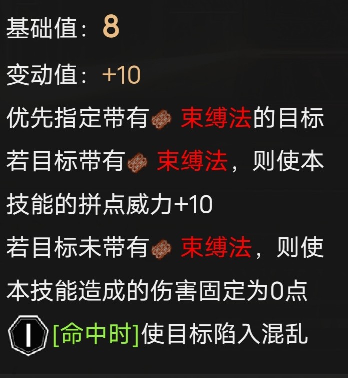 注假如在打破第一条混乱阈的基础下再打破下一个混乱阈可以将其敌人触发混乱+,第三条则为混乱++