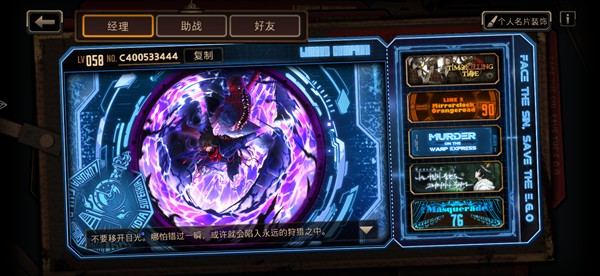 中间的助战区域可以把自己的强力罪人放上去,记得佩戴ego