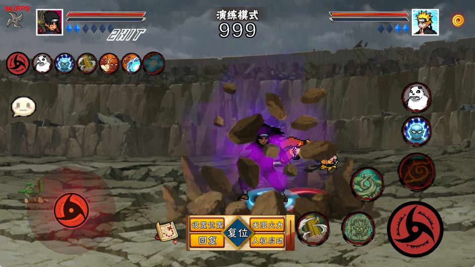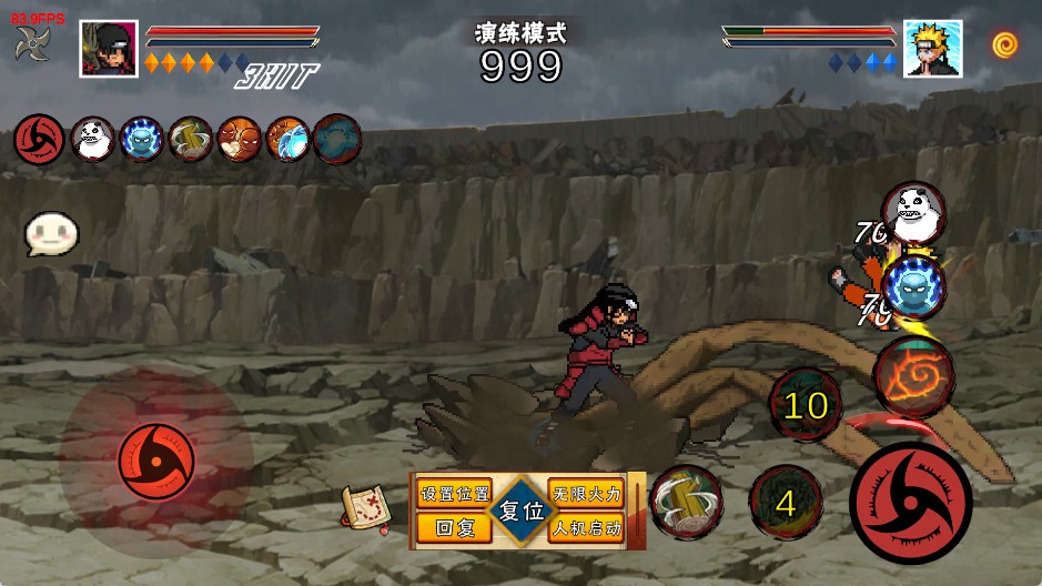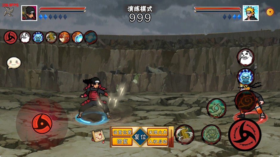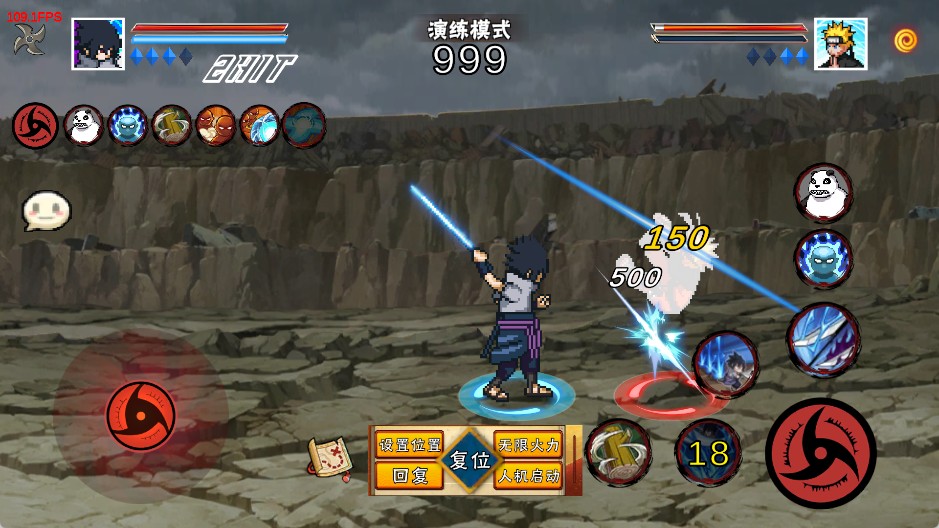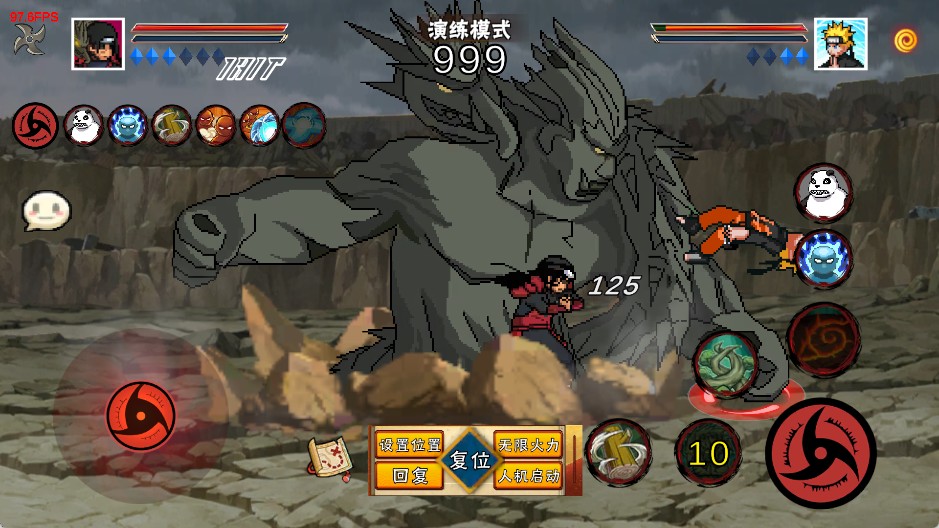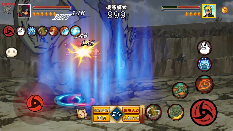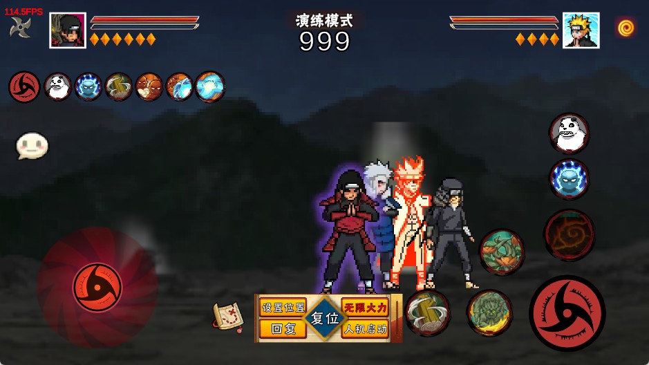 核心玩法:分白绝战场和佩恩入侵两大关卡,支持单人挑战和双人挑战,可调整血量倍率。