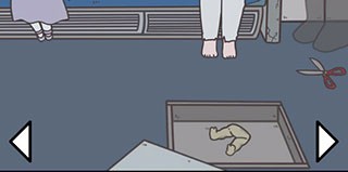 2、切换第三个场景,在地板上获得剪刀,然后把格子打开,获得白色破裤子