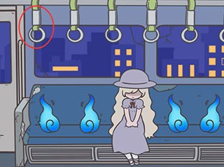5、来到有小女孩的第二场景,选择头顶最左边的拉环,点1下,最右边车厢的机关开启