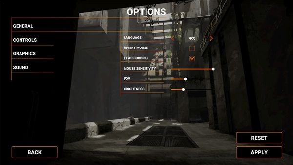 5、进入游戏选项界面,玩家可以根据自身情况设置语言、鼠标灵敏度等项目