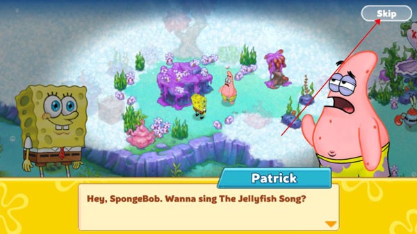 2、进入游戏剧情,我们可以知道由于海底周围有非常多的果酱,玩家需要清理,不想知晓的可以点击右上角跳过