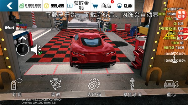 进入车库后,玩家可对车辆外观、悬挂调校、齿轮箱等核心部件进行深度改装,内饰下载完成后将自动生效,打造专属座驾。
