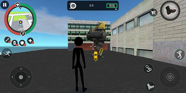 左侧移动、加速,右侧绳索,攻击(跳跃),跳跃,右上侧的武器更换以及血量、经验的显示都实时更新,一览无遗,凭借着大家自由的玩法,与其他帮派的人物进行交火,期间杀敌人能够获得经验,杀多了会产生星级,巡警和其他附近角色会特殊照顾你对你展开火热的进攻,而如何存活,如何将其他人物击杀则是你所需要完成的任务。