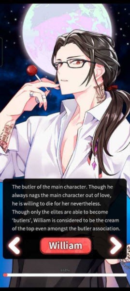 1、威廉:女主角的管家。尽管主人公常因爱而唠叨,他却仍愿为她赴死。虽说只有精英才能成为“管家”,但即便在管家协会里,威廉也被视作顶尖的精英。