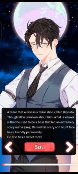 3、Sol:在Ripeato裁缝店任职的裁缝。尽管人们对他了解不多,但他曾是一个令人闻风丧胆的黑手党团伙头目,这一点广为人知。在他那张可怖且冷峻的面容之下,藏着友善的性格。
