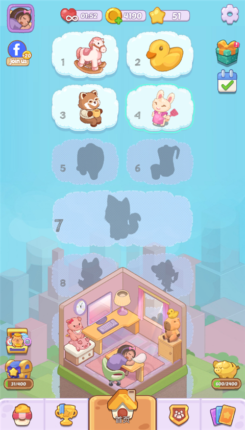 1、进入梦幻房间安卓版,选择关卡。