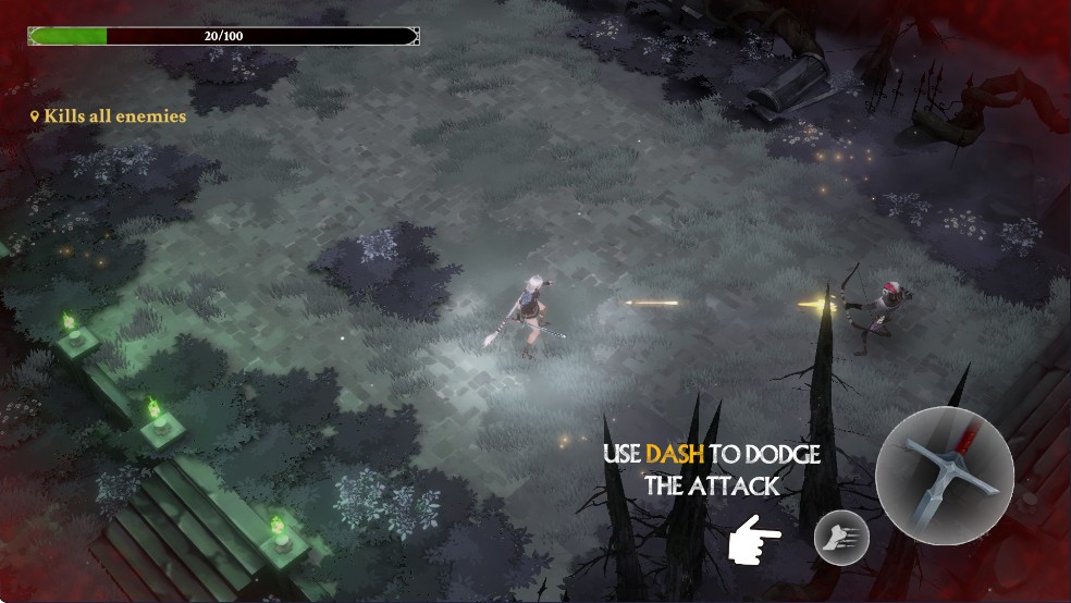 滑动屏幕控制角色灵活移动,躲避敌人的攻击,同时点击右侧攻击按钮精准击杀敌人。在战斗中,合理利用闪现技能来躲避致命伤害,是保持生存的关键。