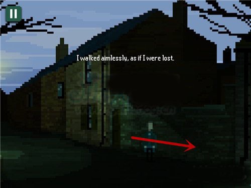 8、进入医院后,不要急着进去,而是点击左边的小路来到左边的一个院子中先见一个人;