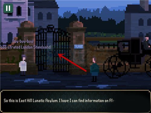 7、下了马车后,玩家会到达医院的门口;可以直接点击铁门进入医院;