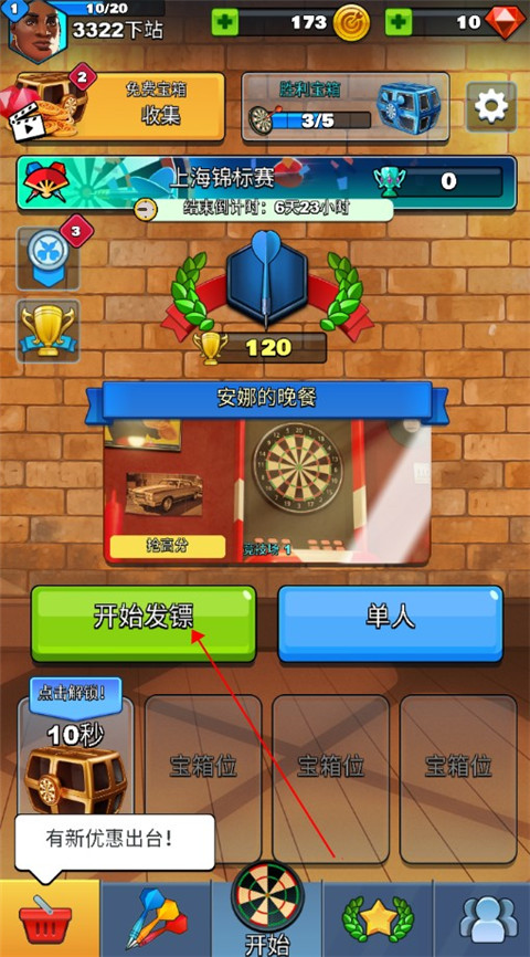1、随着游戏进度提升,将逐渐解锁更多的飞镖场地。
