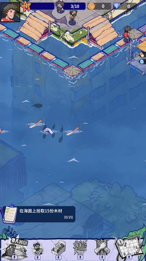3、合理使用手中的资源,升级和建造自己的小木筏。