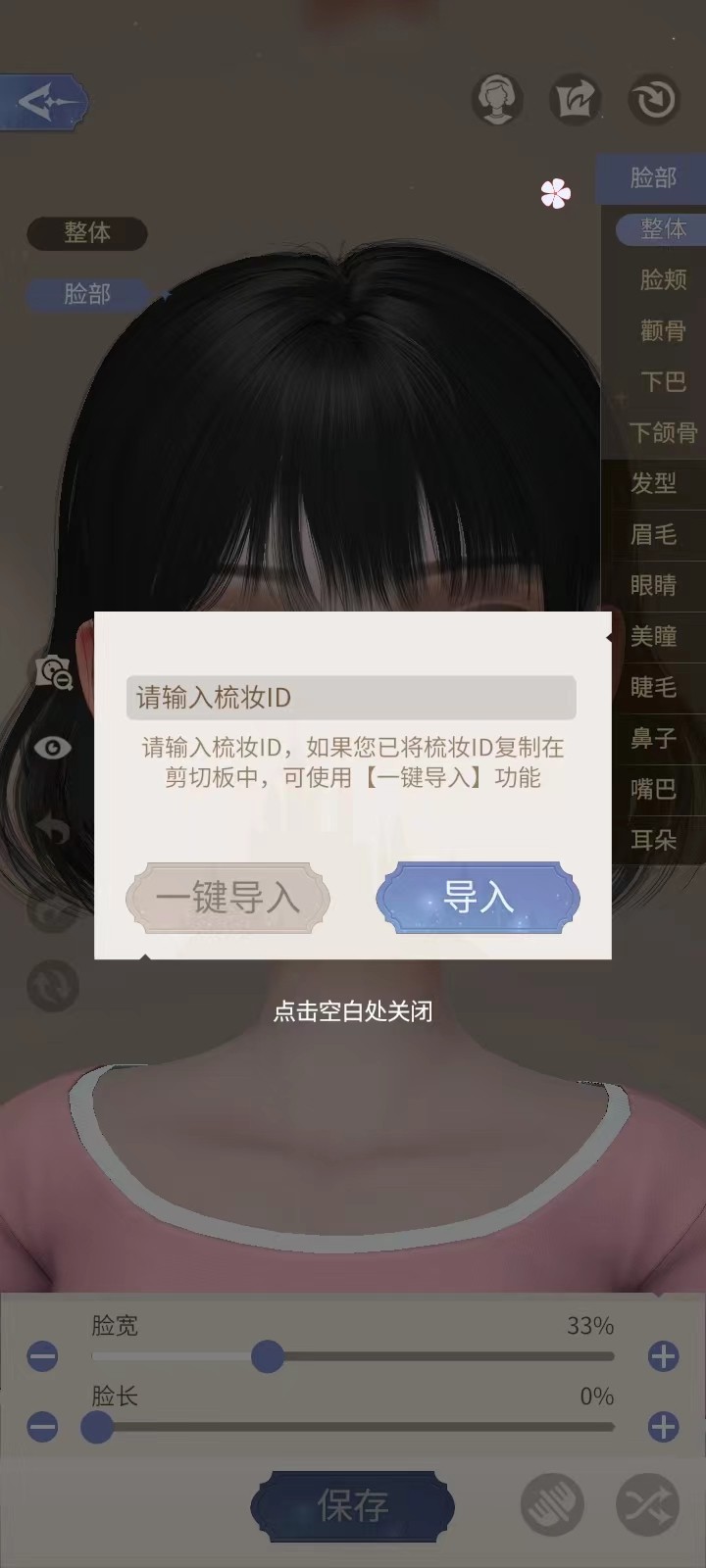 3、还可以直接点击右上角最右边的图标,直接输入梳妆id,点击导入;