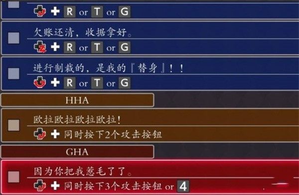 ①突击:普通、攻击状态下都可以使用,援助者会进行额外的打击(根据角色不同,招式也不同,详见角色指令),协助玩家“破防”和连招。