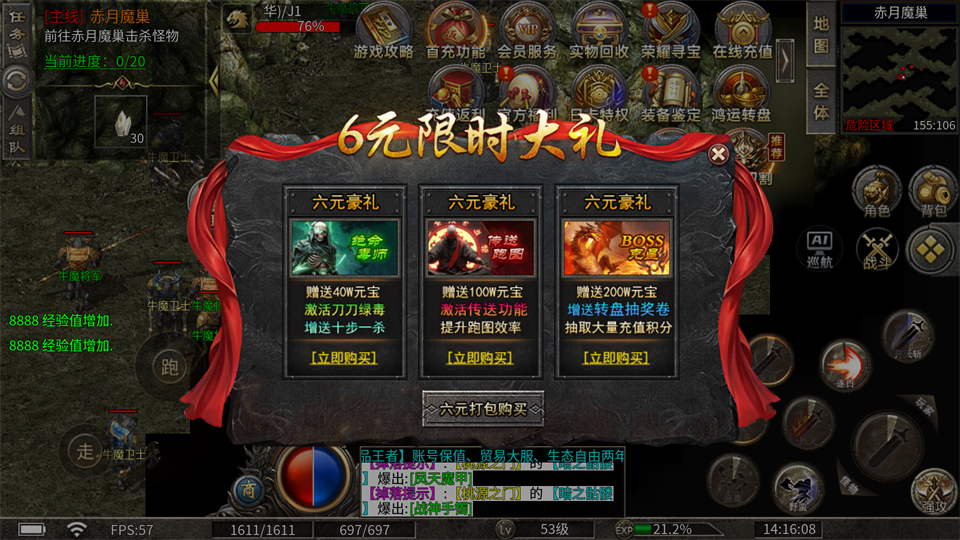 高效起号:紧跟主线,6元礼包必购(解锁:刀刀绿毒十步一杀/定点传送)