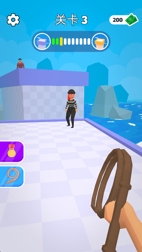 皮鞭大师是一款非常轻松有趣的休闲益智哦啊库闯关游戏,这款游戏采用了较为简约的卡通3d游戏画风,带给玩家轻松的视觉效果感受,这款游戏还有不同的场景等待玩家来切换,享受紧张刺激的跑酷闯关之旅,而且游戏还有一定的随机性,极大的增加了游戏的趣味性,喜欢这款游戏的玩家一定不要错过,快来下载游玩吧。