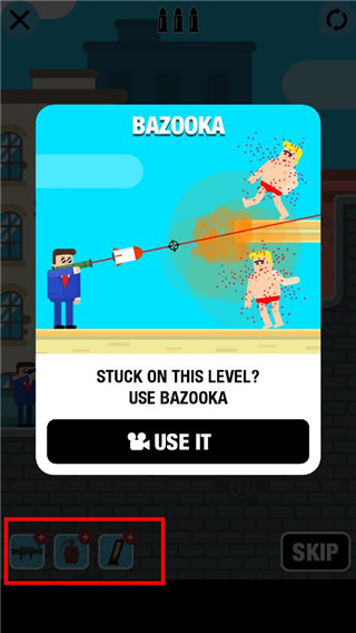 3、游戏中提供了三种不同的道具可供使用,不同的道具威力技能不同